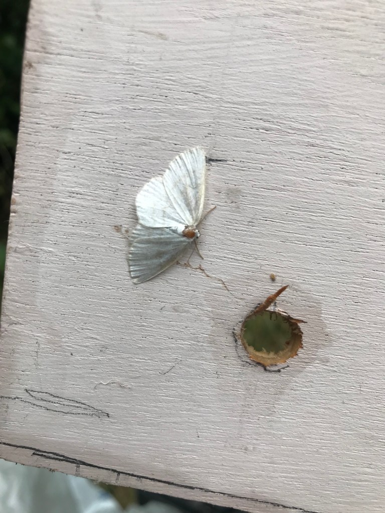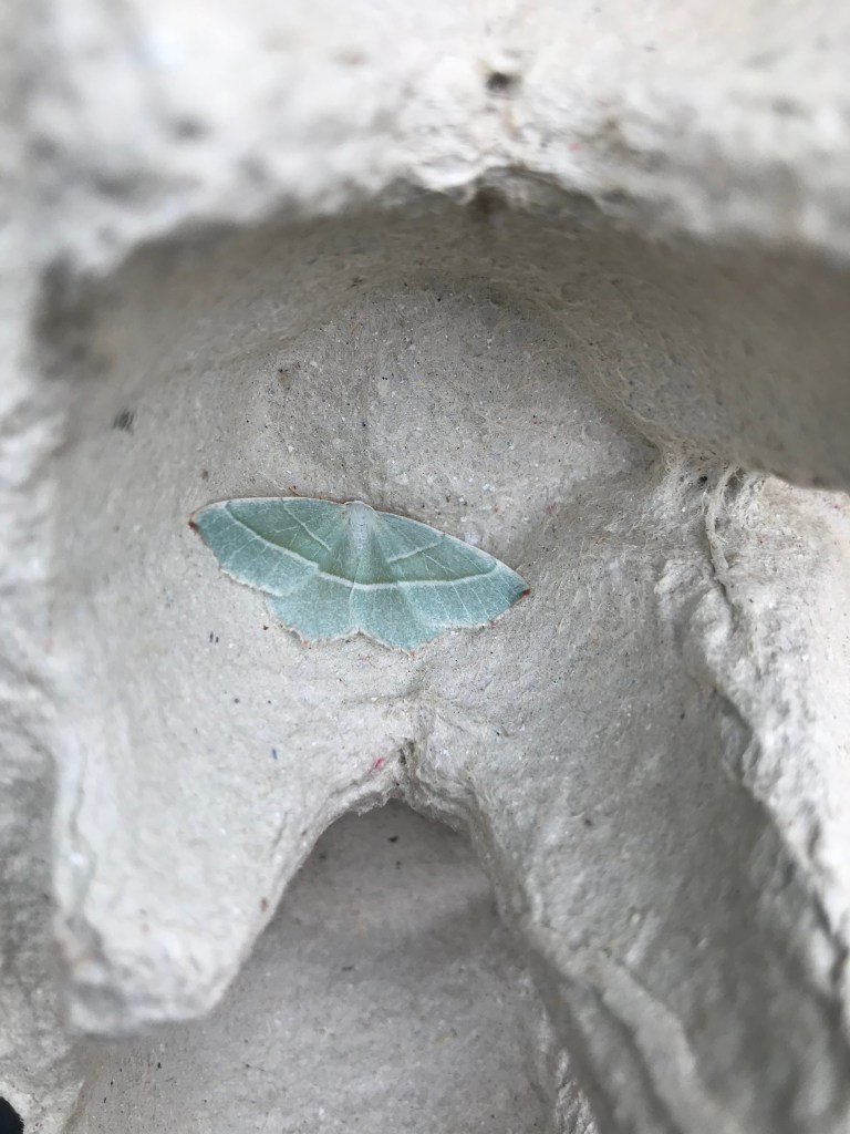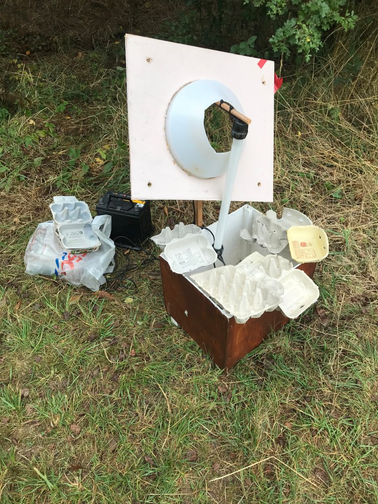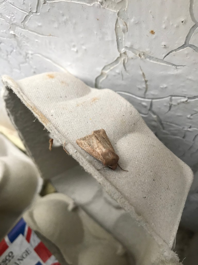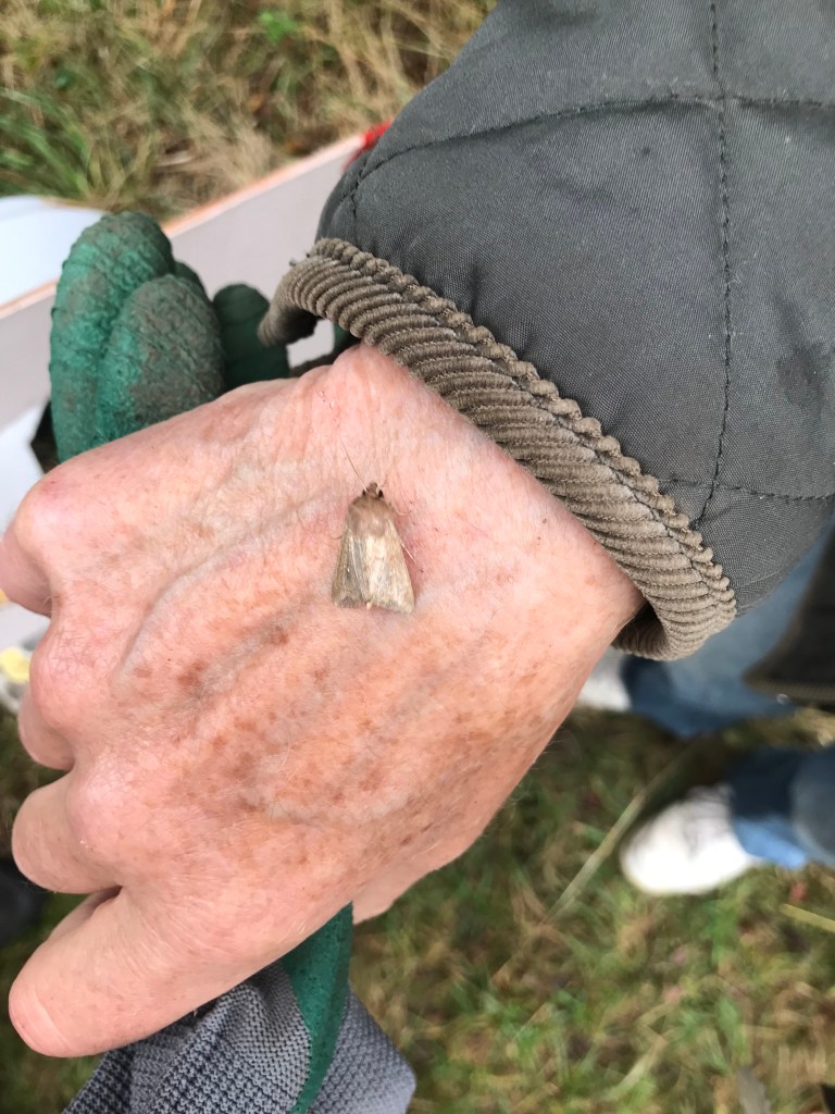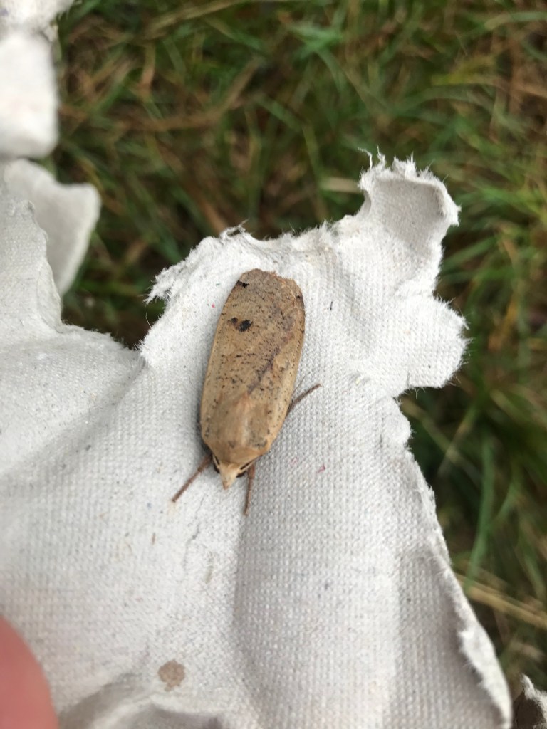 St Mary’s Fields Conservation – After a very well attended annual Great Hay Rake in August (55+ people including OCV volunteers), the conservation morning on Sat 7th September was also well attended with people of all ages gathering to cut back growth on the edge of pathways, create dead hedges, plant a new tree in the hazel coppice, test the water quality of the river, consume home made malt loaf and flapjack in impressive quantities, and perform other similarly essential September tasks. As well as the mahusive hawk moth caterpillar espied during the morning (which have been seen a lot around the village this summer), one of the highlights of the morning was looking into the moth trap that had been out overnight. We were thrilled to see several different species dozing in the egg boxes (see the rogues gallery below)! Kudos if you can name any!