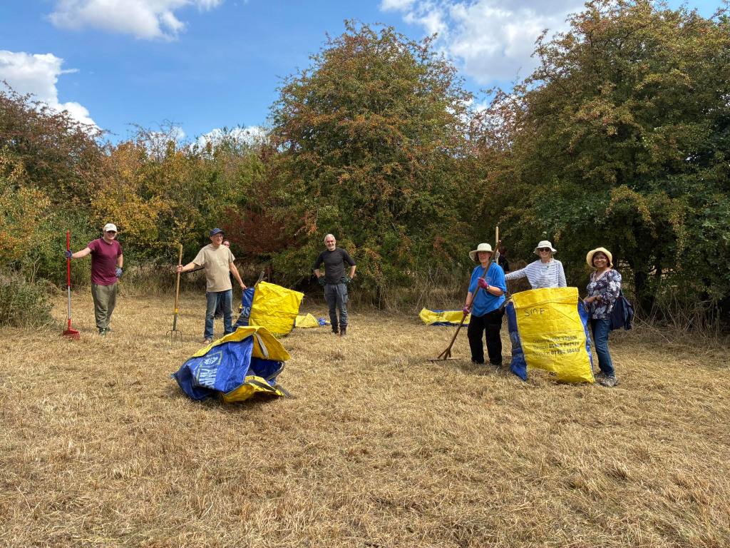 A worthy crowd of local volunteers showed up for this year’s ‘Big Hay Rake’ at St Mary’s Fields on Sunday 24th August and were rewarded by lovely weather and dry hay! The excellent turn-out and high spirits meant all the hay was raked and piled high by 1pm. A big thank you to everyone who came, especially local newcomers and, of course, the Oxford Conservation Volunteers (OCV), whose annual support for this task makes such a big difference.